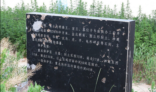 据国家文献中记载,明秦王陵园为明十三代秦藩王家族墓地,此陵园内埋葬着明两百四十多年镇守在西安城府的13位秦王,陵园神道两边还保存屹立着多尊帝王石像及各种动物石像,大约有18件左右,2006年5月份已列入国家重点文物保护单位。