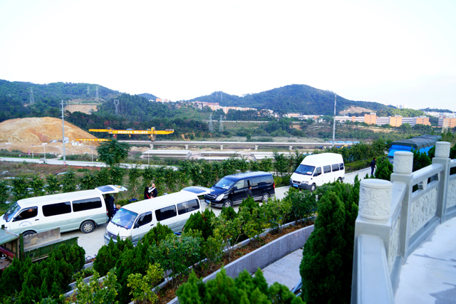 图为金钟墓园内剧组车队